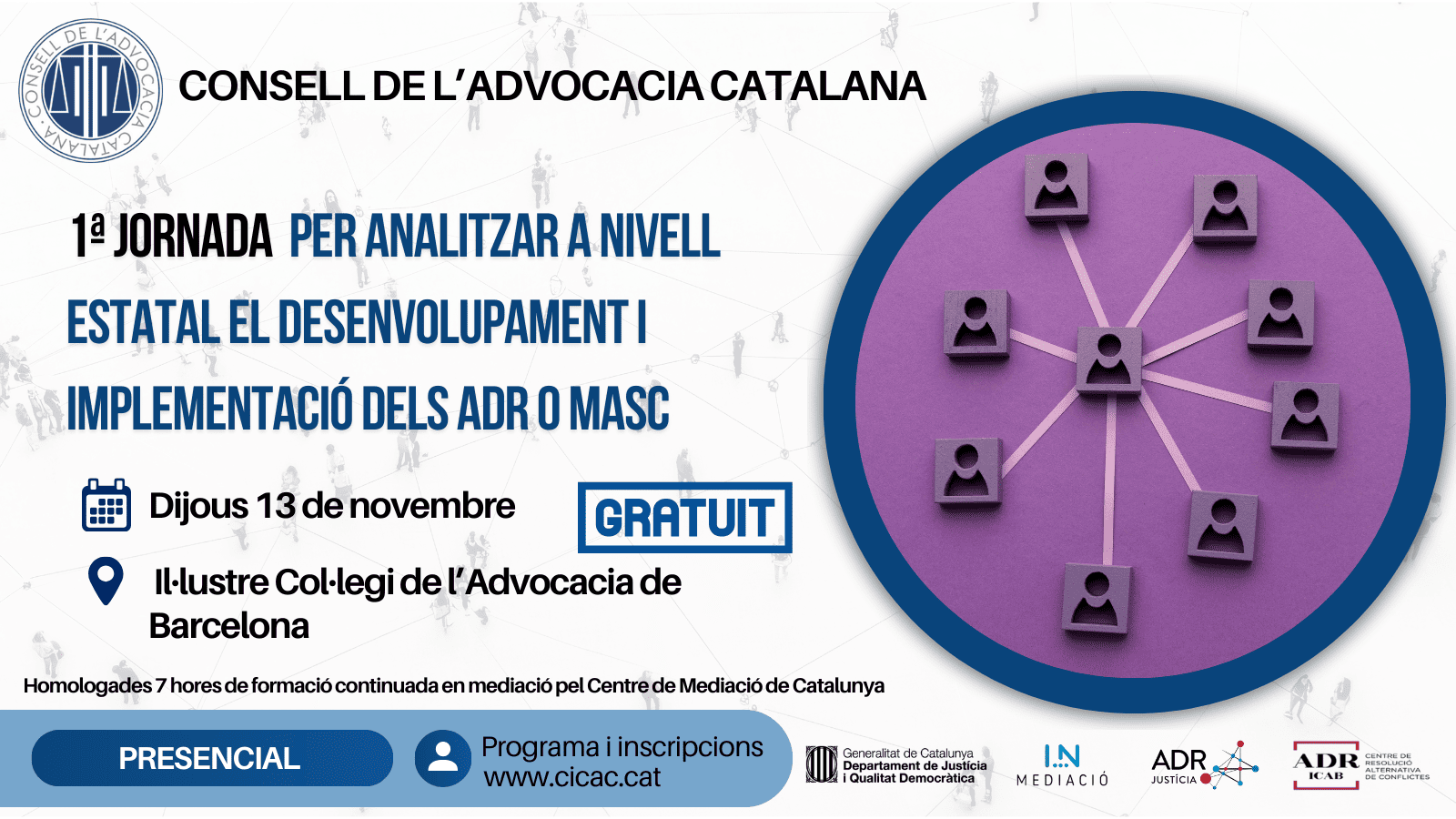 Jornada col·loqui amb entrevistes a destacats responsables i experts del món jurídic i professional per reflexionar sobre els possibles canvis que pot comportar la nova Llei 1/2025, a nivell social i com pot impactar la cultura dels ADR en la ciutadania i en les nostres relacions interpersonals i professionals