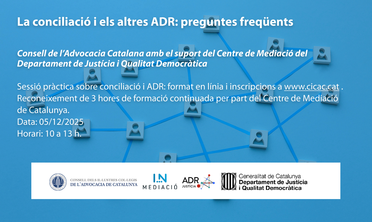 Taula Rodona en format presencial per abordar diferents aspectes de la Llei 1/2025, amb relació als diversos ADR que contempla i el seu impacte en l’exercici de l’advocacia i de la procura.